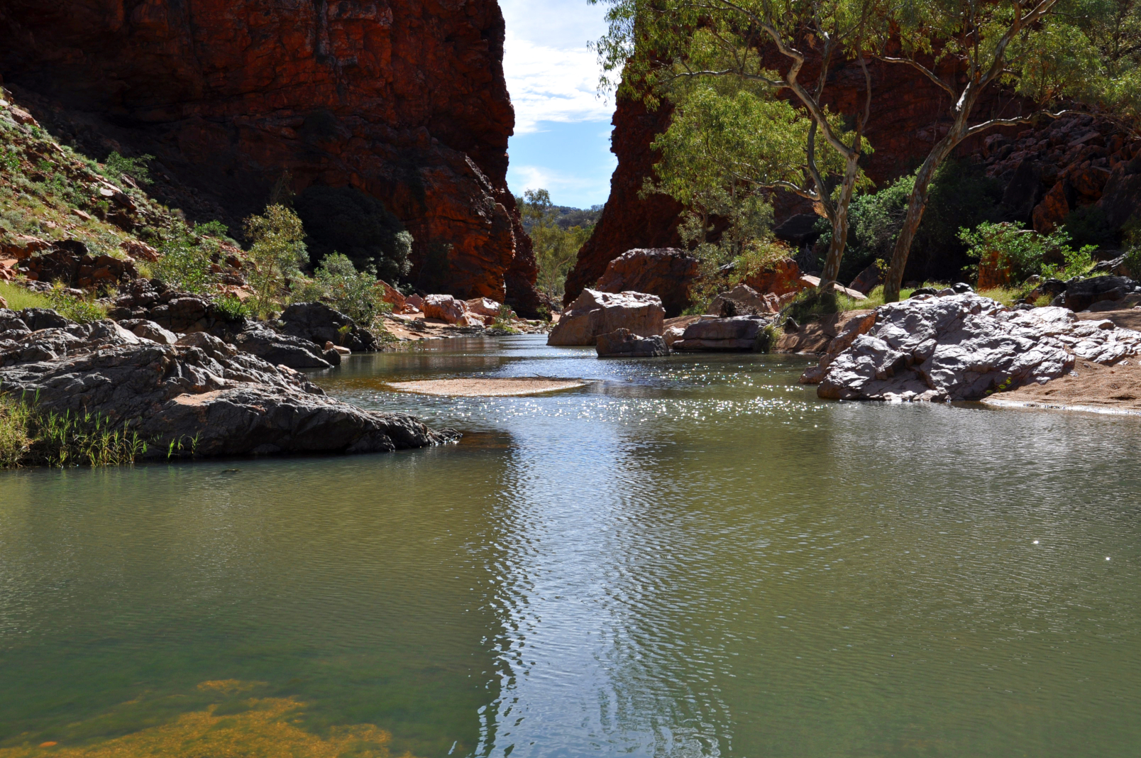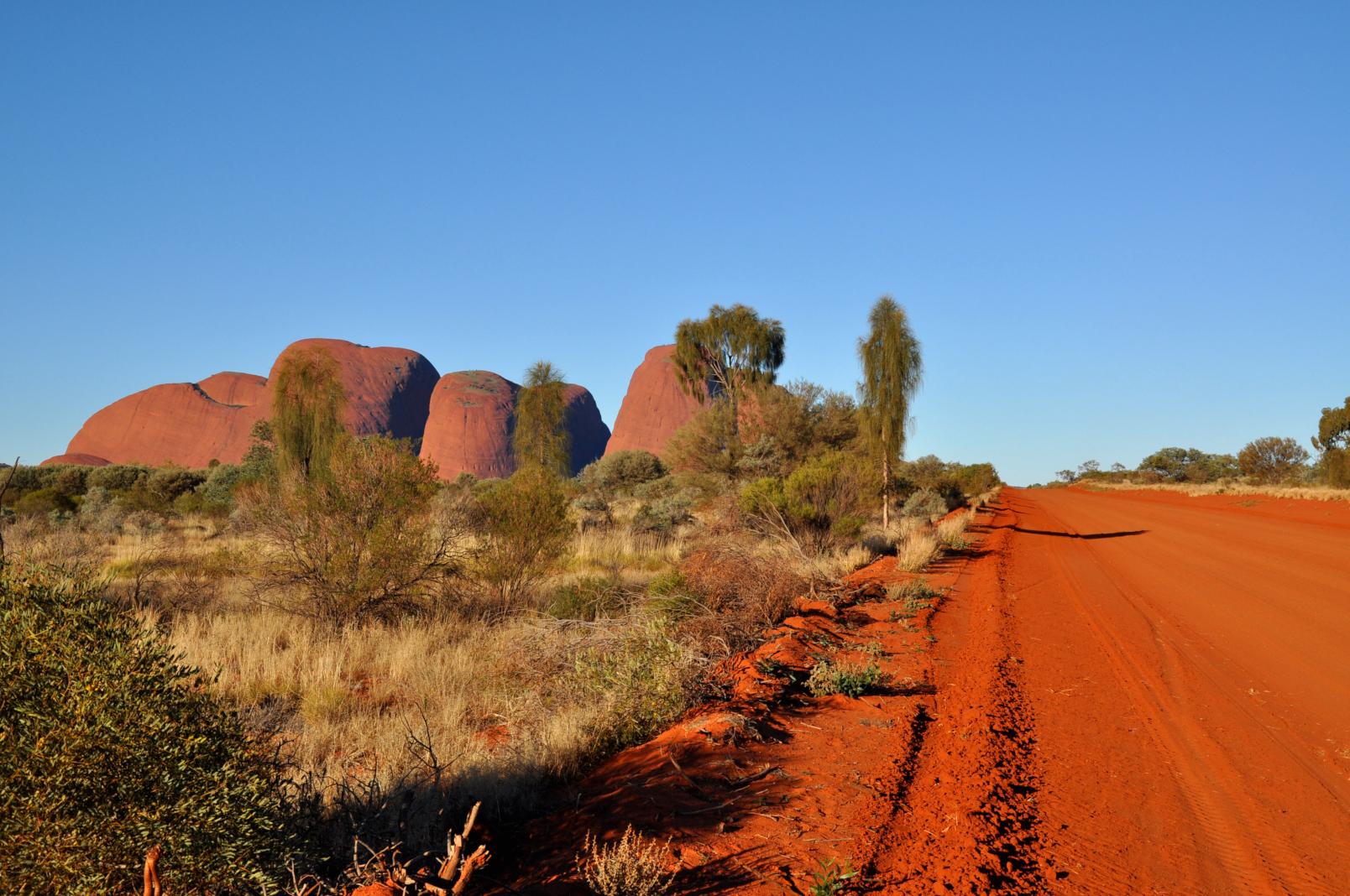 Etwa 30 bis 40 Kilometer westlich des Uluru liegen die Kata Tjuta. Der Name bedeutet in der Sprache der Anangu „viele Köpfe“. Die Formation besteht aus 36 massiven Gesteinskuppeln, die über eine Fläche von mehr als 20 Kilometern verteilt sind. Höchster Punkt: Der Mount Olga ist mit 546 Metern (über dem Umland) deutlich höher als der Uluru.