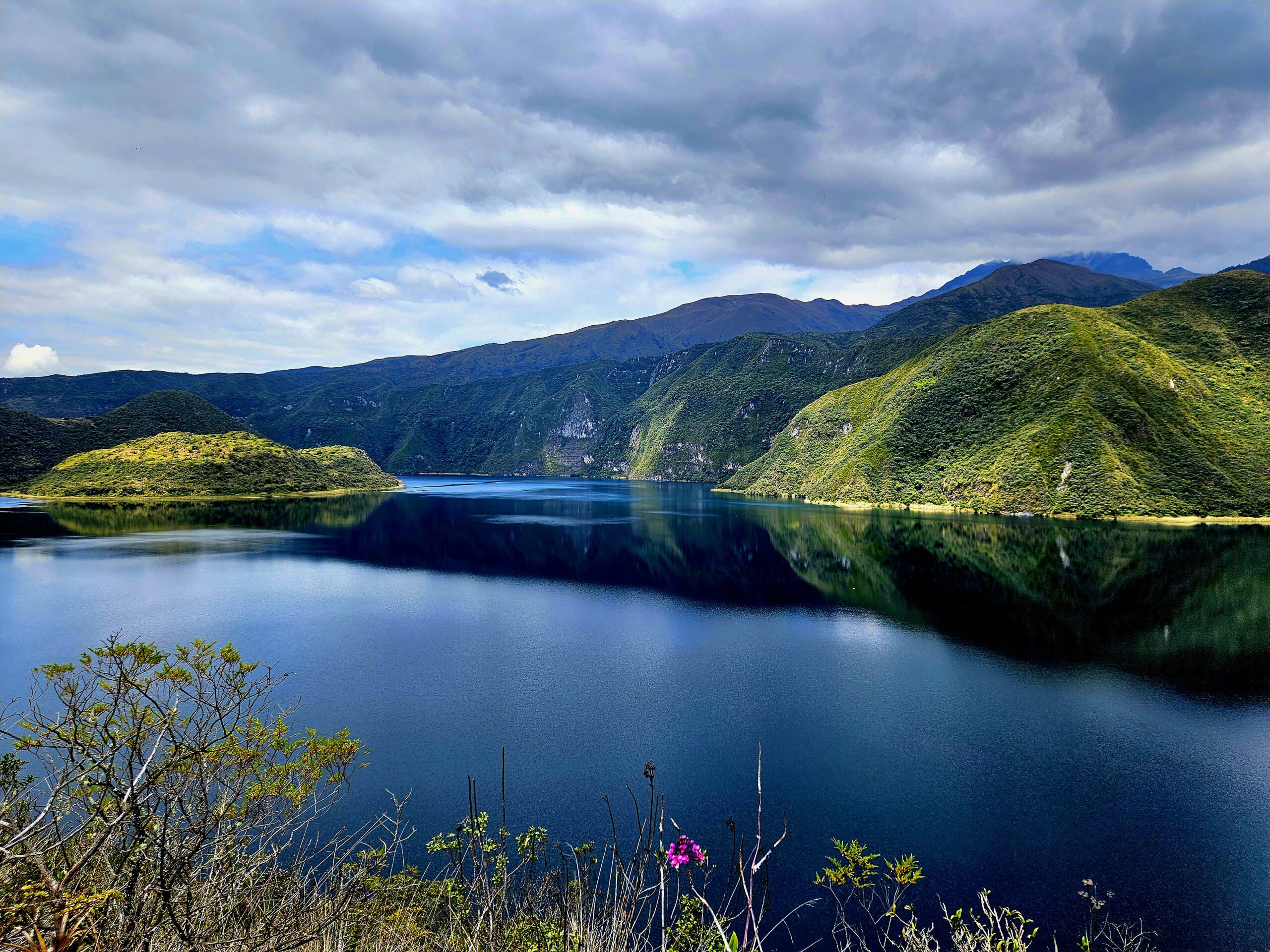 Vulkan Cuicocha & Indigenas: Umgeben von 3.000ern wandern wir im Naturschutzgebiet von Cotacachi-Cayapas an der Cuicocha-Lagune. Wir sind nicht allein: Otavalo-Schamanin Rosita begleitet uns in ihrer traditionellen Tracht und reinigt uns nach der Wanderung auf 3200 m. Ein irres Erlebnis!