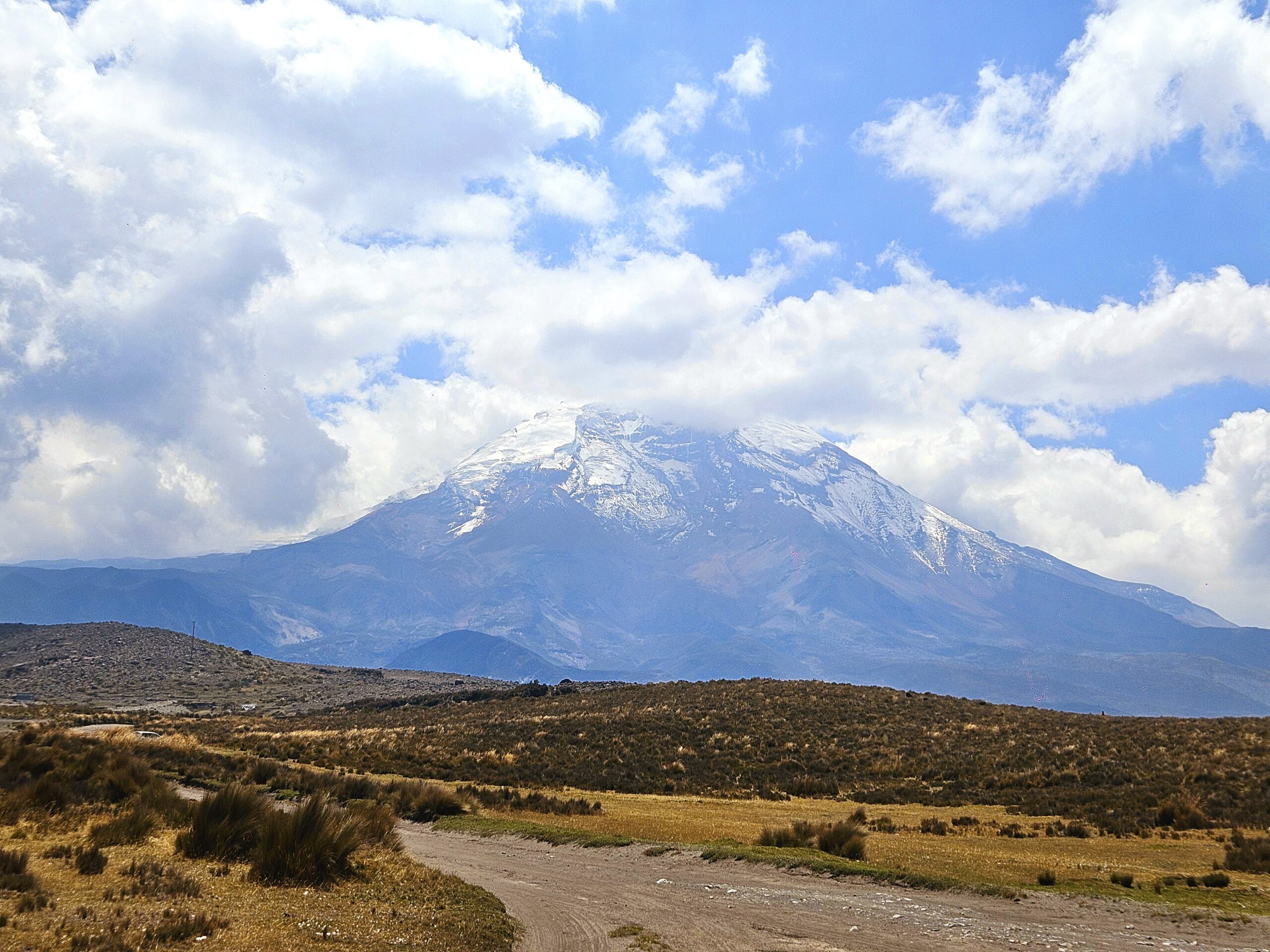 Chimborazo Von der Sonne begleitet, fahren wir wieder auf der Panamericana Richtung Süden. Wir wandern auf 4200 Meter am imposanten Chimborazo, der mit 6.310 m der höchste Vulkan Ecuadors ist. Aufgrund der Nähe zum Äquator ist sein Gipfel der am weitesten vom Erdmittelpunkt entfernte Ort auf der Erdoberfläche. Auf der Wanderung lernen wir einige Indigenas und jede Menge Lamas und Alpakas kennen. Hotelübernachtung in Alausí.