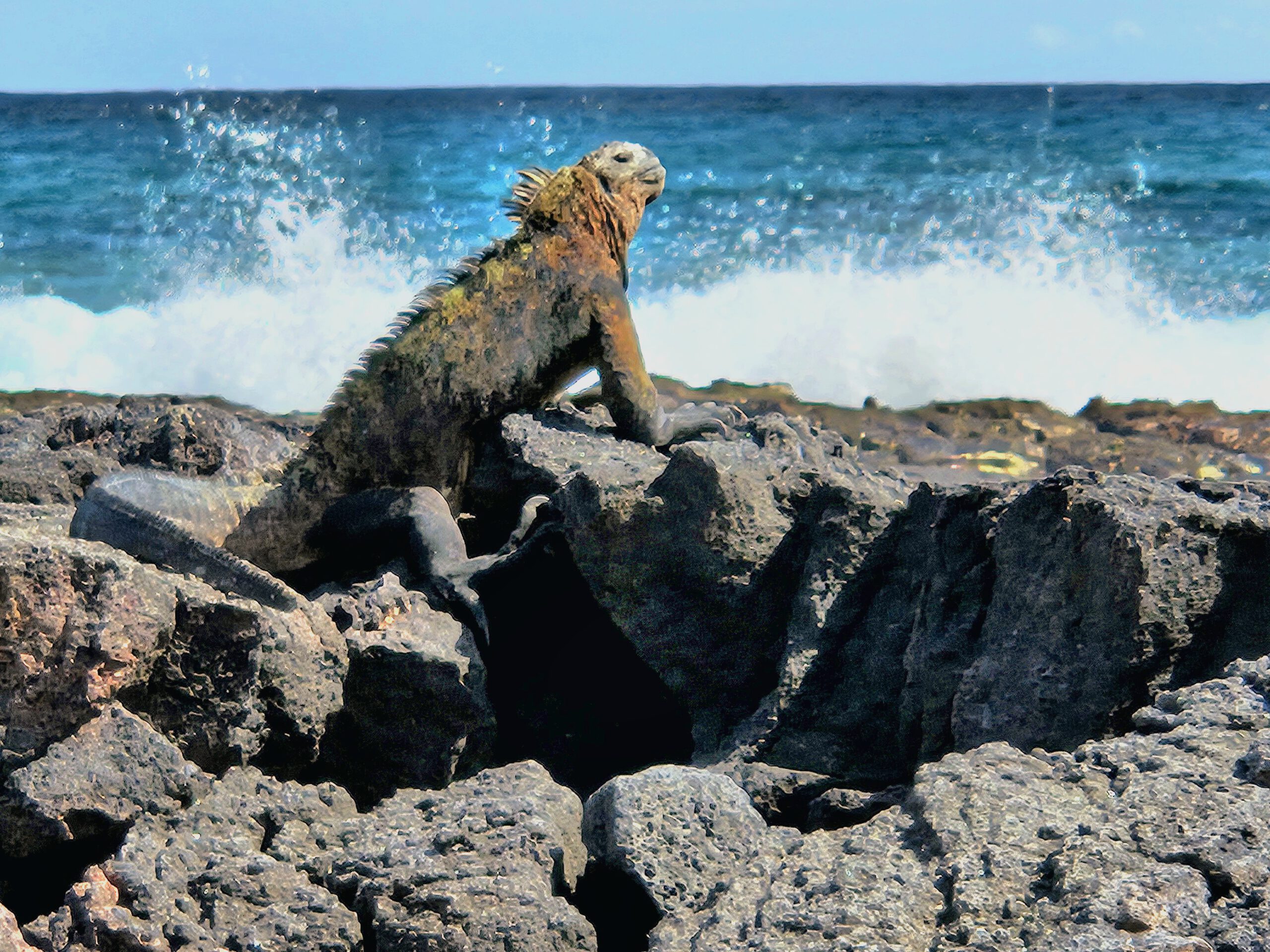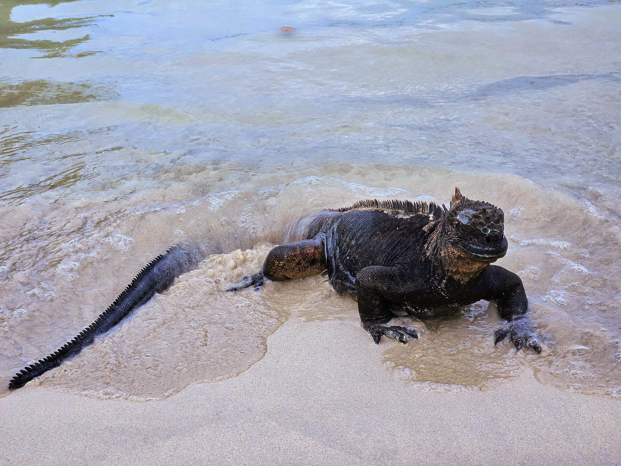 Heute besuchen wir das tierreiche Eiland Tintoreras. Nach der Erkundung zu Fuß gibt es nochmal einen Tauchgang. Dabei sehen wir Meeresschildkröten, Haie, Fischschwärme und Rochen. Wir schwimmen in einem Lavakanal mit Begleitung von zwei Robben – ein unvergessliches Erlebnis. Nachmittags geht es zur Flamingolagune und zur Schildkrötenaufzuchtstation. An einer Strandbar genießen wir den Pazifik mit Sonne, Wellen und Coco Loco.