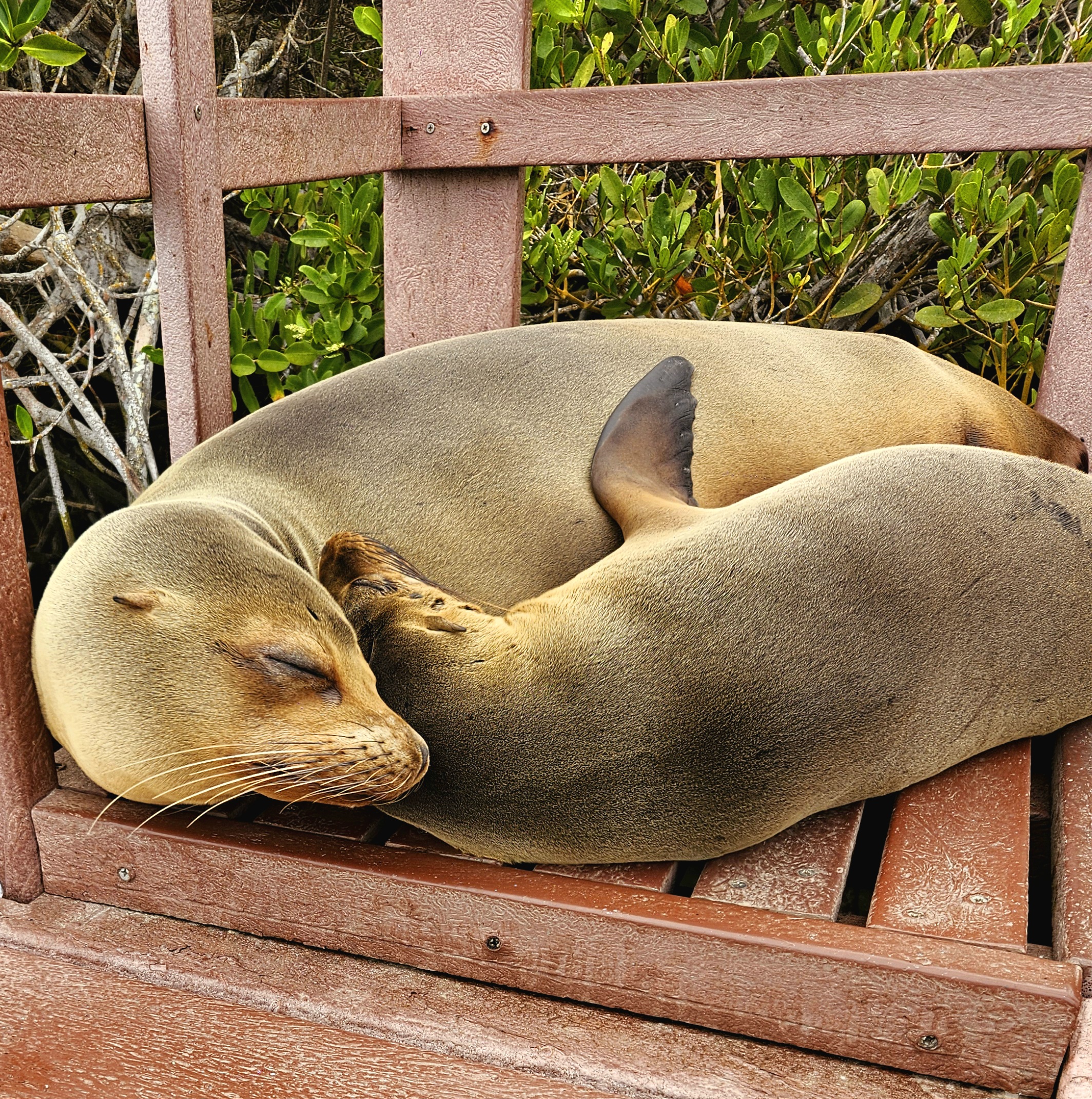 Am Nachmittag schnorcheln an einer Bucht, begleitet von verspielten Seelöwenjungen. Wir sehen Meeresschildkröten, Rochen, einen Kugelfisch und bunte Fische wie im Aquarium.